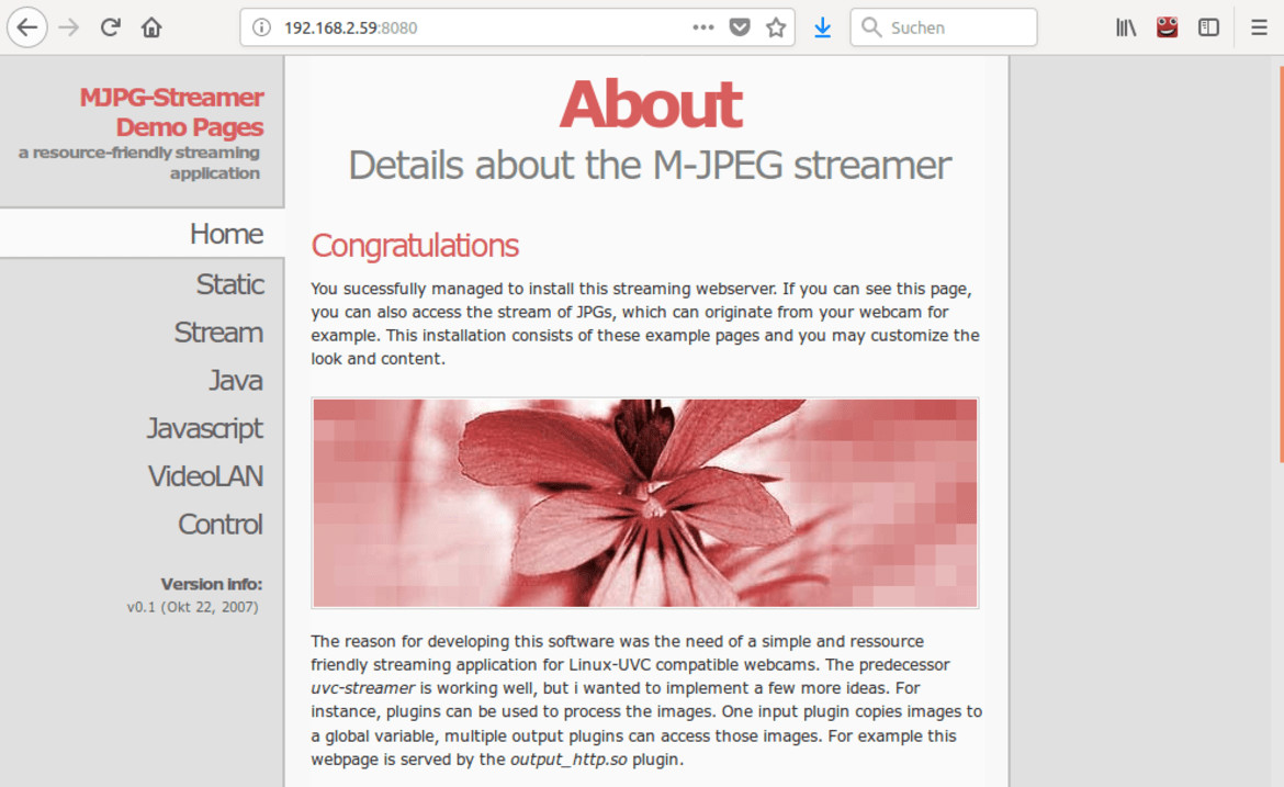 Monitoring your prized possessions on camera is easy with MJPG-Streamer on