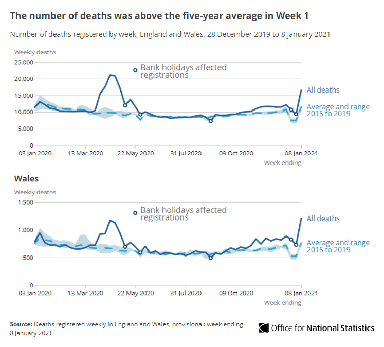 The last desperate claim of the COVID deniers - that significant excess deaths aren't happening in the second wave - collapses in the most horrible way possible. And bear in mind, these figures only go up to 8th January: many more have died since.pic.twitter.com/o0mol0dznC