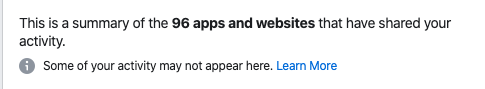 At least 96 companies have shared my activity from visiting their sites with FB via 3rd party cookies. Read through for cleanup and instructions for disabling. Cleanup following: https://twitter.com/EFF/status/1222311671823130624 … For the impatient: https://www.facebook.com/off_facebook_activity/ …pic.twitter.com/T9nCdzvMpg