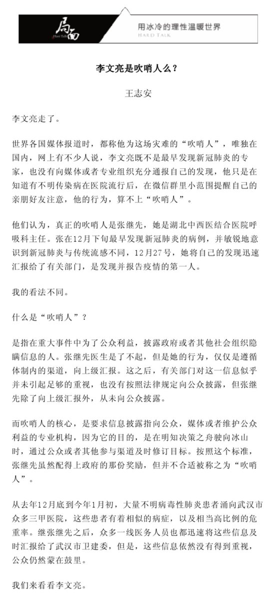 噩耗:那位最早在网上披露疫情,被警方训诫的医生李文亮,今晚去世了。前些天他在病房里接受北青报深一度的采访,首次披露了诊断和瞒报的细节。这篇文章在24小时后被删。现如今,英雄李文亮,也被“删除”了。武汉欠他一个道歉,但我们会永远记住他!pic.twitter.com/acGfFARpPn
