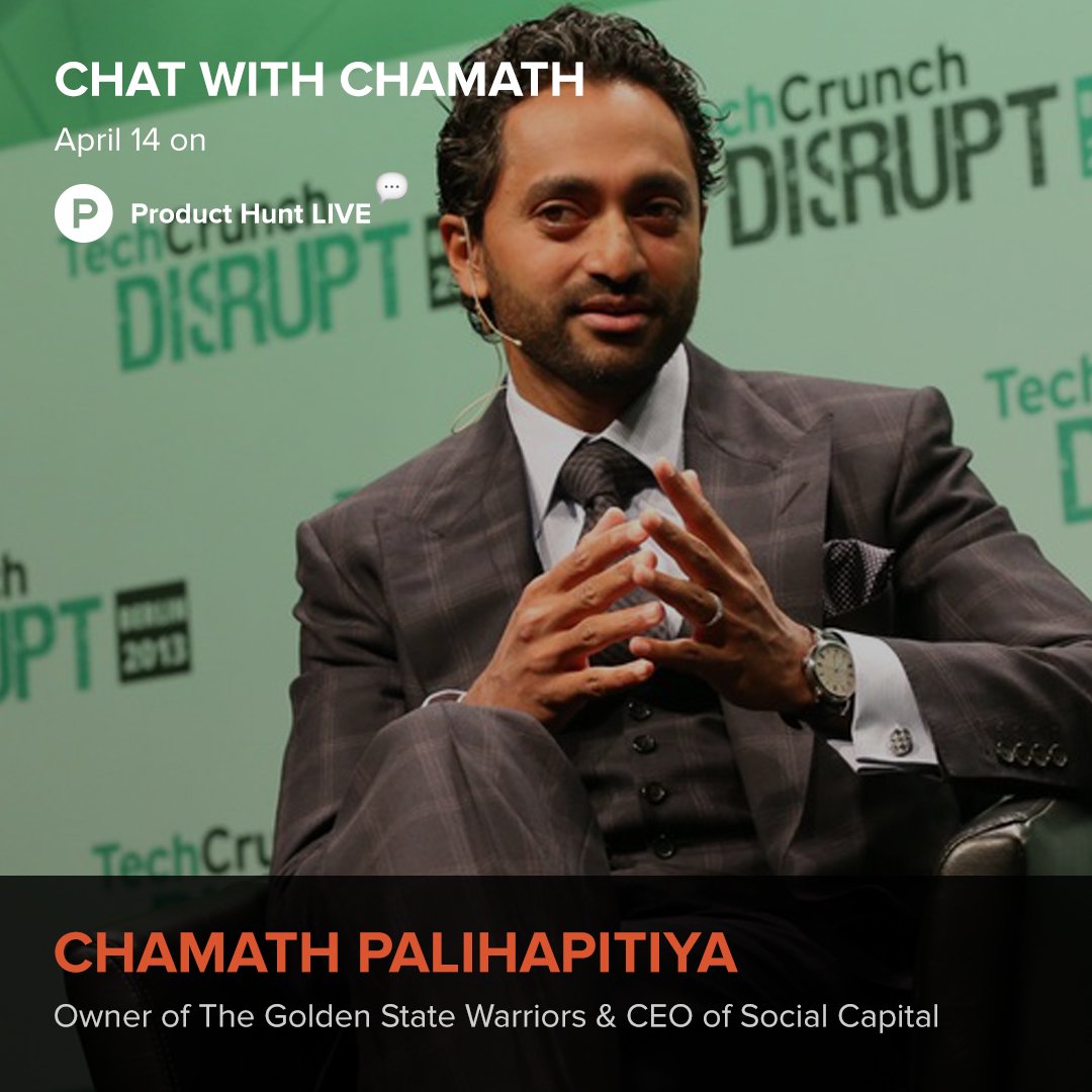 @Chamath will be answering your hardest questions on Thursday, April 14. Sign up! https://www.producthunt.com/live/chamath-palihapitiya …pic.twitter.com/lck8xBzWB4