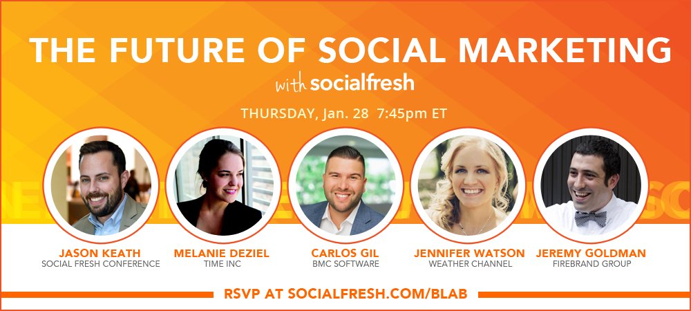 Join me and a few awesomely smart people this THUR to chat about the future of social media https://blab.im/social-fresh-conference-the-future-of-social-media-marketing-in-2016 …pic.twitter.com/hTbF9WE334
