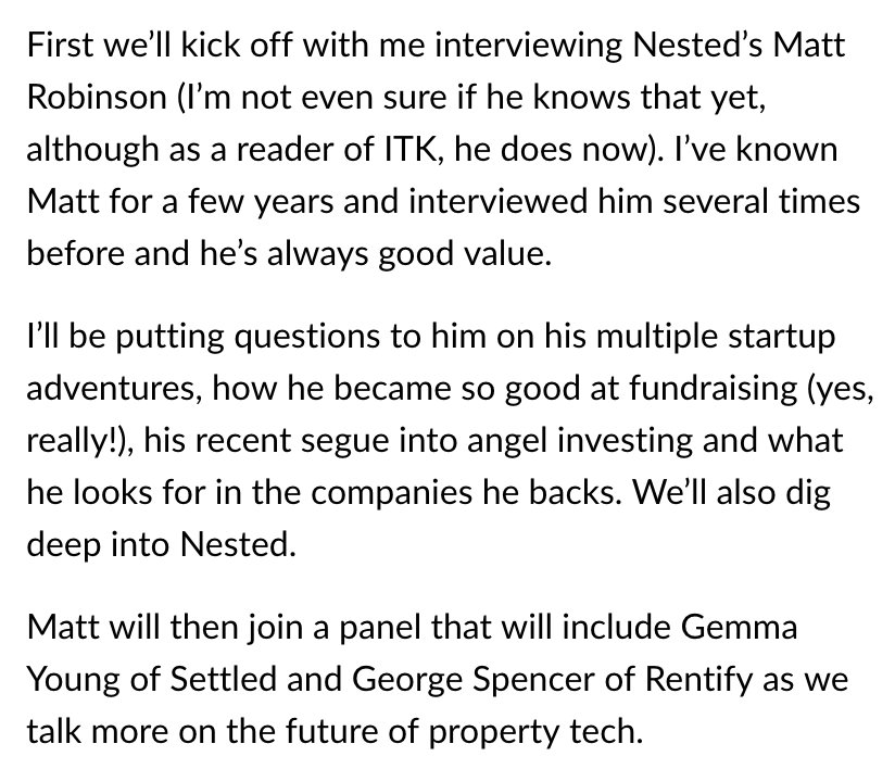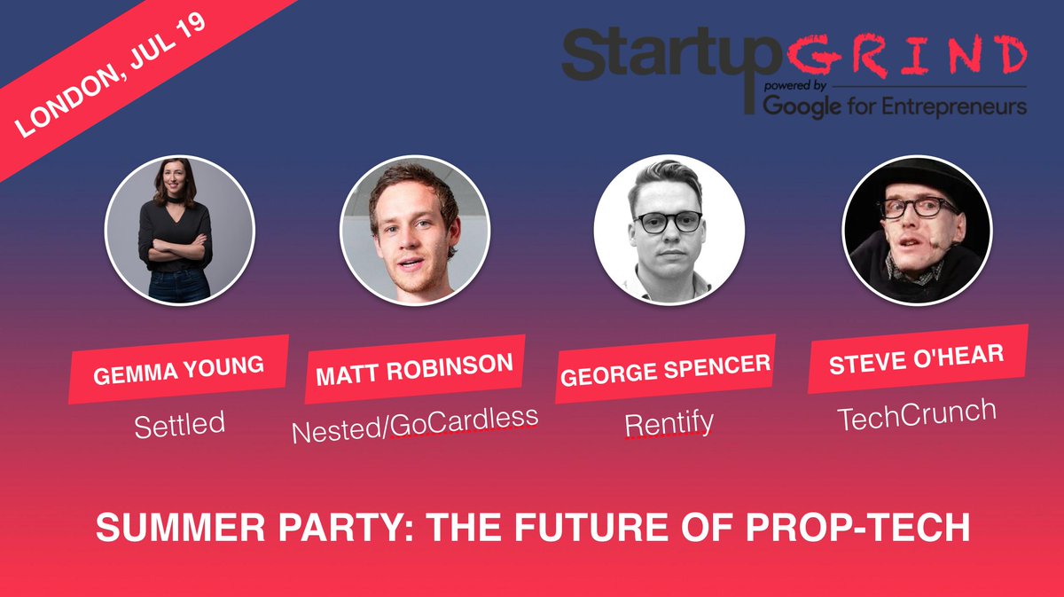 #proptech O'Hear special. I'll be grilling Nested/GoCardless'@mattjackrob for first half hour, followed by a panel discussion with Gemma Young from Settled and@probablygeorge from somewhere... TICKETS HERE: https://www.startupgrind.com/events/details/startup-grind-london-presents-london-summer-party-the-future-of-property-tech#/ …pic.twitter.com/7dRrnPrkxG