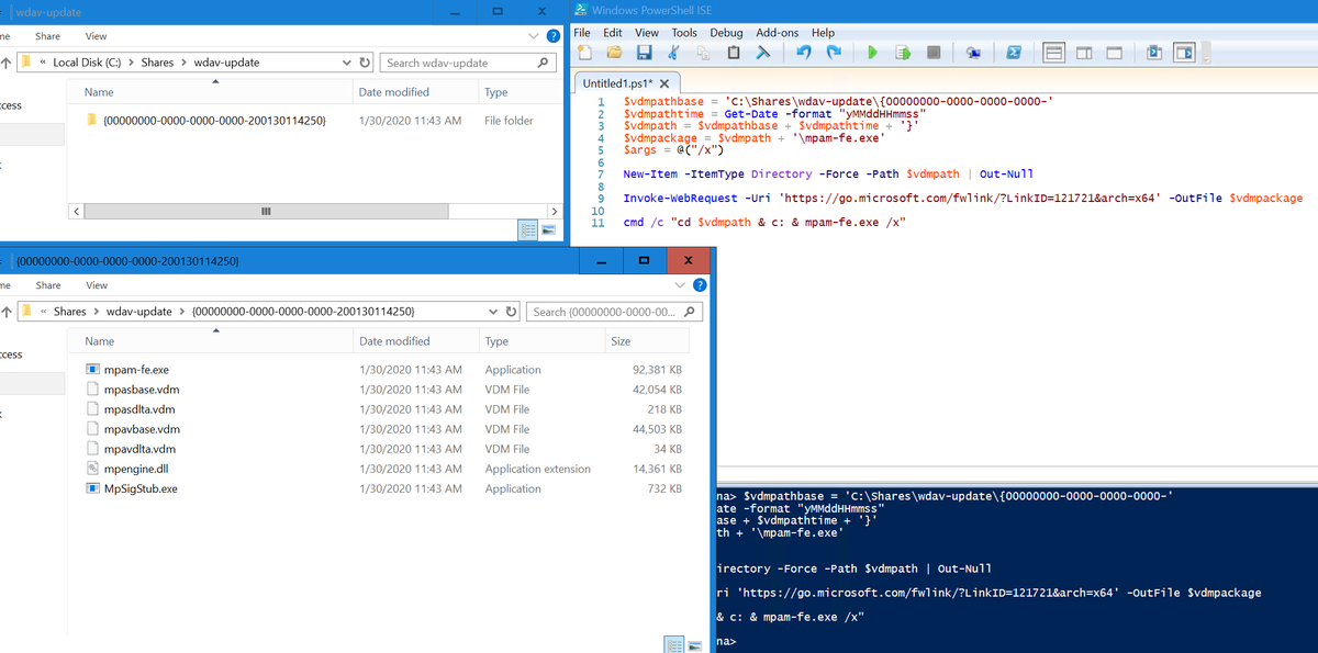 This is in regards to Windows Defender Updates having a reliable fallback (SMB share) in case Windows Update, WSUS, or ConfigMgr fail you.https://twitter.com/NathanMcNulty/status/1222974883161751552 …