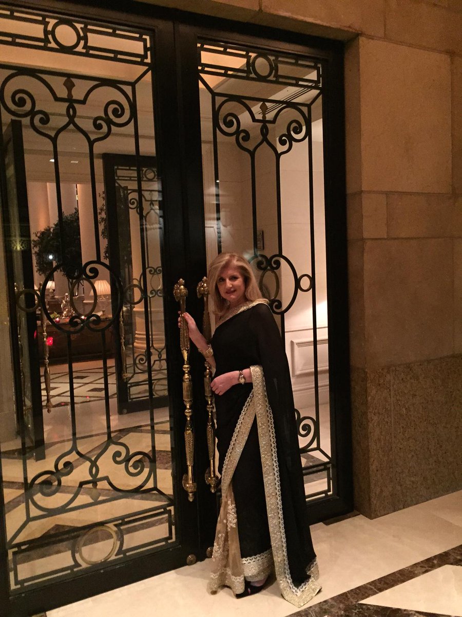 At launch party for @HuffPostIndia wearing a beautiful sari from @PerniasPopUp -- a wonderful gift from @sonamakapoorpic.twitter.com/T5N8fzW1R4