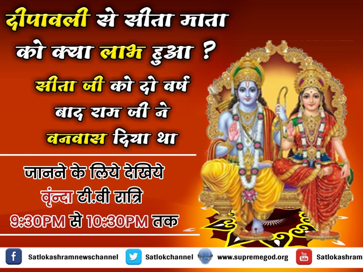 गर्भवती सीता को घर से निकाल दिया | फिर क्यो दिवाली मना रहे है हम | अवश्य देखिऐ संत रामपाल जी महाराज जी के मंगल प्रवचन साधना चैनल पर 07:45 PMpic.twitter.com/NJMy7p92Aw