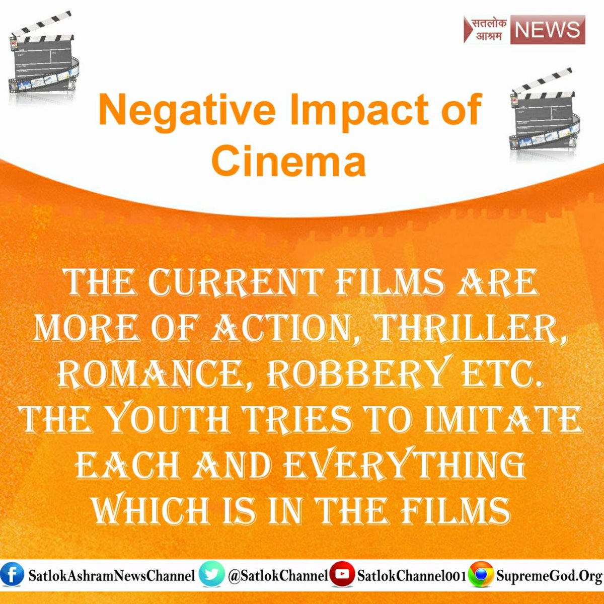 फिल्मों से हमें काफी नुकसान होता है जिससे कि नशा चोरी करना आदि बुराइयों को ग्रहण करने लगते हैं और अगर हम इसके अलावा सत्संग सुनेंगे तो हम पर अच्छा प्रभाव पड़ेगा औरहम सही मार्ग पर चल सकेंगे