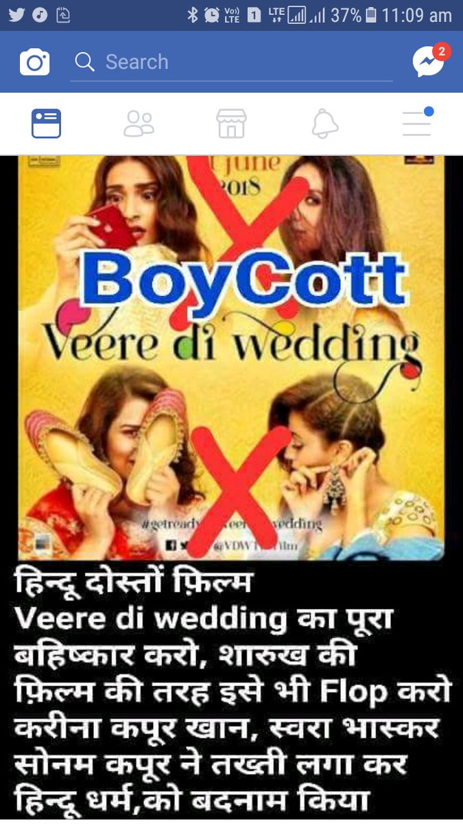 bhadwe madarchod hindu he iss characterless sonam ki movie dekhenge.. #BoycottVeereDiWedding