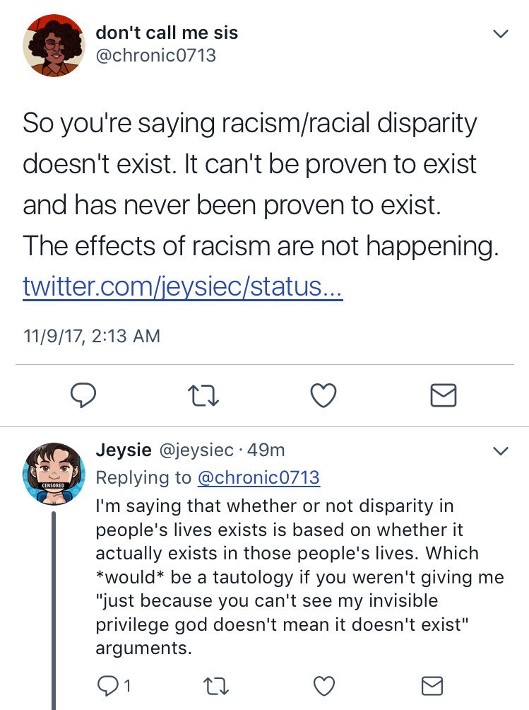 This woman has argued that racial disparity/white privilege doesn't exist. And wonders why people don't like her and she has never dated anyone at 38. It's a mystery.pic.twitter.com/CcqS5dwf0c