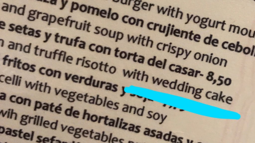 De primero creo que voy a pedir el risotto con torta del casar. Risotto with WEDDING CAKE!!