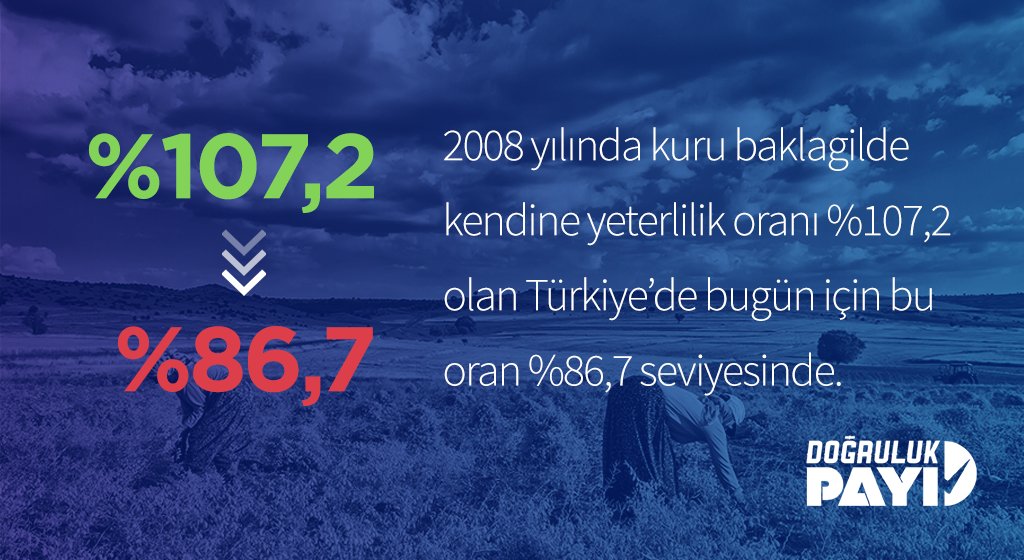 2008 yılında kuru baklagilde kendine yeterlilik oranı %107,2 olan Türkiye’de bugün için bu oran %86,7 seviyesinde. http://www.dogrulukpayi.com/beyanat/5912cf42c5b09 …pic.twitter.com/0tGDjWSjBr