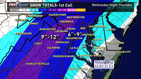 1st call snow map. Confidence is not as high as I would like. P-Type issues yet to be resolved.