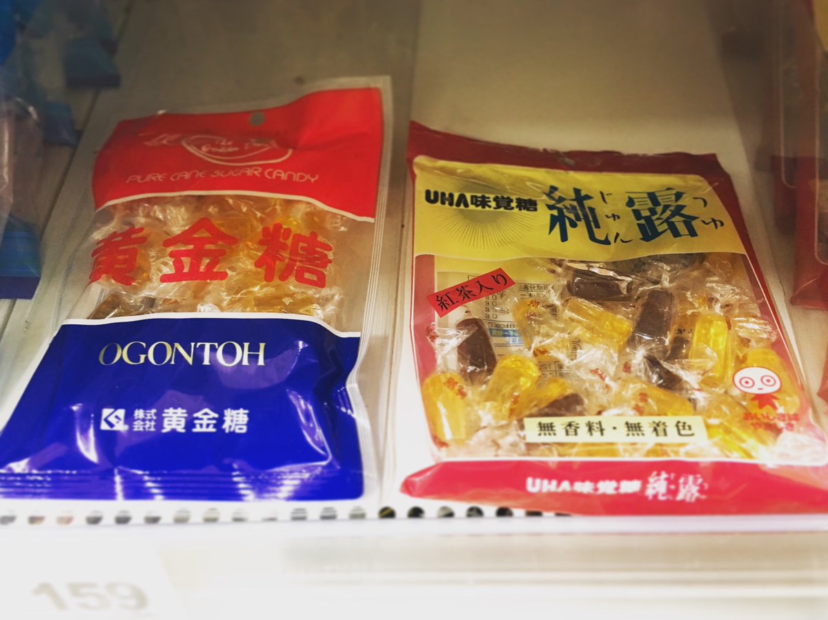 【黄金糖と純露】 黄金糖は四角柱。純露は五角形で紅茶味がある。 純露に慣れ親しんてたから神戸で初めて黄金糖を見て純露のパクリ?と思ったけど実は黄金糖の方が歴史が古いのね。 煮物の隠し味にも使われる黄金糖。こっちでは殆ど売ってないので、見つけると嬉しくて買っちゃう