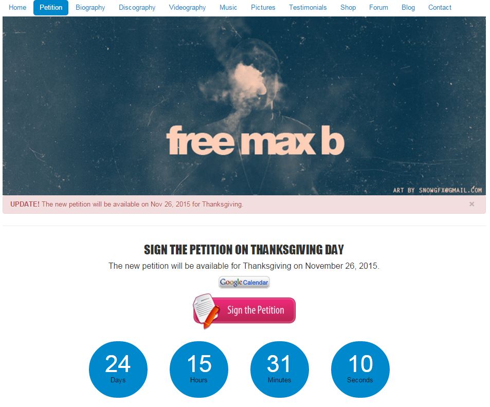 Happy Thanksgiving everyone! My new petition is now available on http://supportmaxb.com . Thanks for your support.