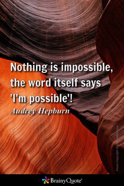Nothing is impossible, the word itself says 'I'm possible'! - Audrey Hepburn http://brainyquote.com/s/a_64f27 pic.twitter.com/Qn7wNXJF6W