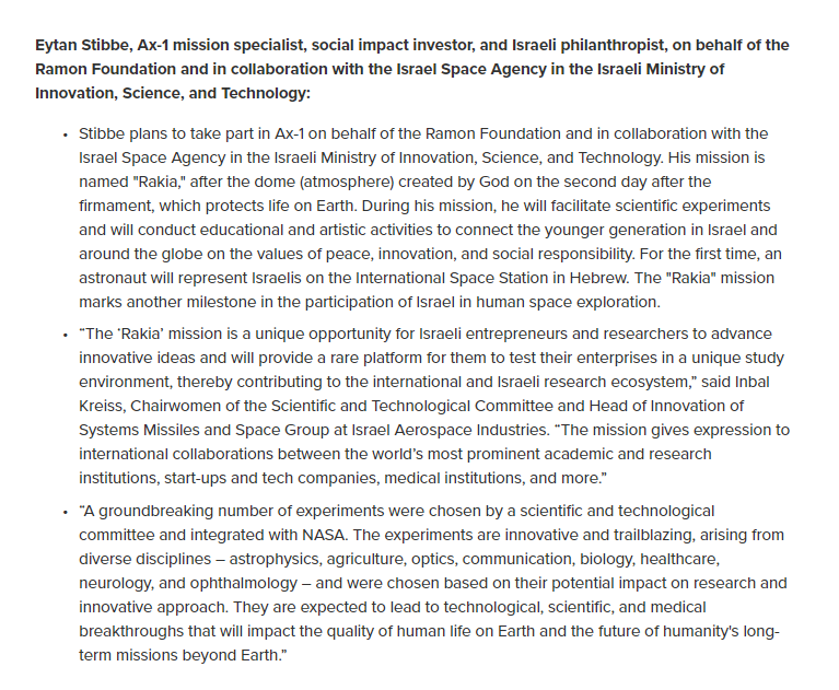 Axiom Space announces the portfolio of microgravity research that private astronauts Larry Connor, Mark Pathy, and Eytan Stibbe will conduct during the Ax-1 mission to the ISS: https://www.axiomspace.com/press-kit-ax1-research …pic.twitter.com/3SVGYsewcP