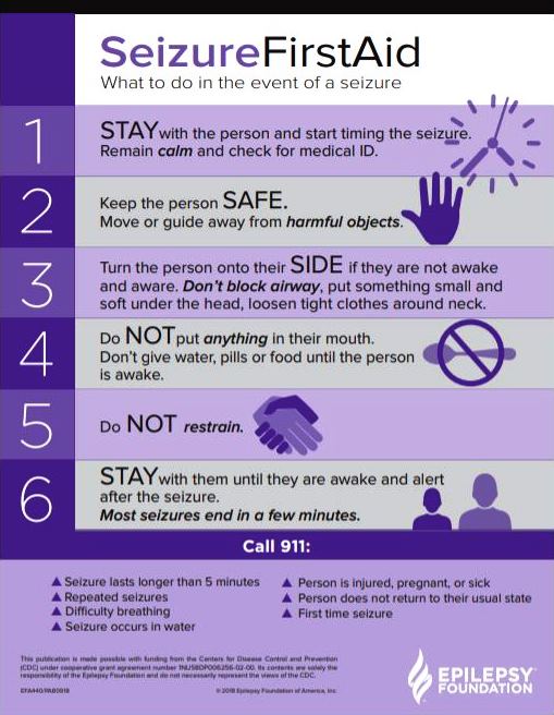 @EPICLongIsland: Do you know the basics of seizure first aid? Find out more here:#StaySafeSide#EpilepsyAwareness https://buff.ly/2UwayfD pic.twitter.com/ilwajUWSpI
