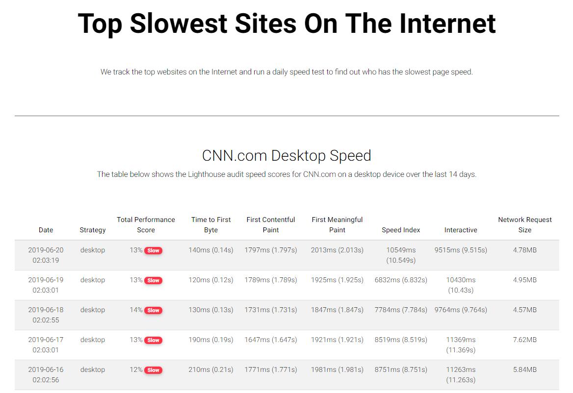 See the top slowest sites on the Internet updated daily! https://speedmonitor.io/topsites