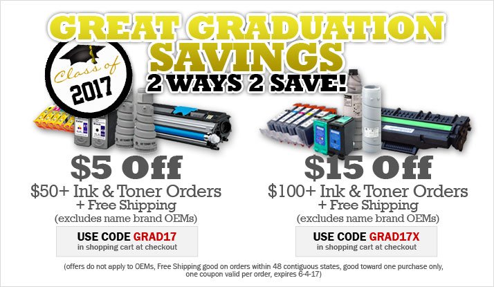 #Ink &#Toner Orders (excl OEMs). Use GRAD17 in cart. Exp 6/4. Shop now http://ink4less.com pic.twitter.com/o2FzDUHUTg