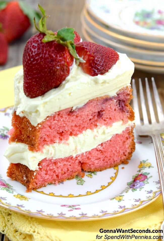 This Strawberries and Cream Cake is as pretty and delicious as it is easy to make!