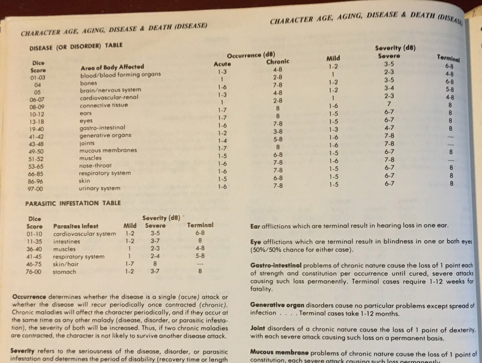 You were supposed to sometimes roll for your chance to get a disease or infection. Think your hero can't get a Severe, Acute Infection of the Mucous Membranes? THINK AGAIN, PORKPIE! Again, I stress. Nobody ever did this.pic.twitter.com/NKInunINOx