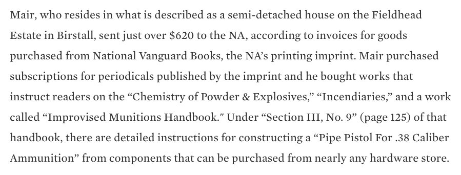 purchased materials that could be used for terrorism but he wasn't on police radar. Non-Muslim that's why. :(