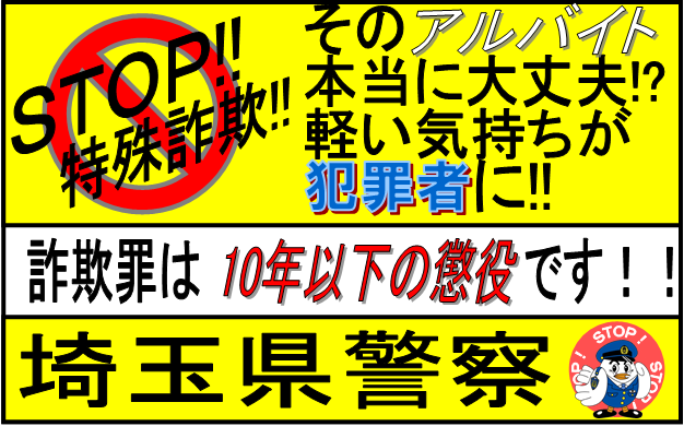 【振り込め詐欺情報】 昨夜(2月4日(火))、新座市で、警察官を装う者から「詐欺グループを逮捕しました。あなたがお使いの銀行名を教えてください」等の振り込め詐欺前段の電話がかかってきました。被害に遭わないために、留守番電話を設定するなどし、犯人と話さないようにしましょう。