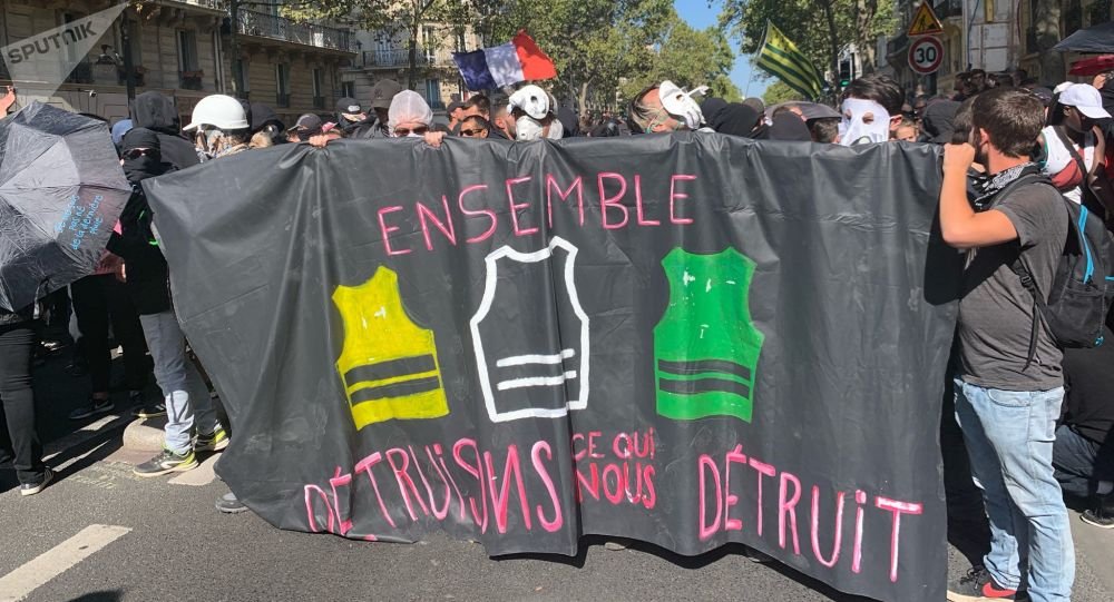#SputnikVidéo | Des poubelles en flammes, alors que les #FDO continuent d'user de gaz #lacrymogène contre les manifestants de l'#acte45