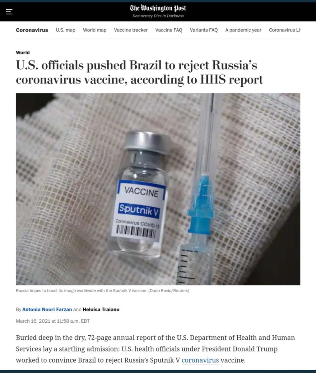 Boohooo Sputnik V... We trust ANVISA! All other pharmaceutical laboratories had their vaccines approved so you failed. Do your homework, ANVISA is a recognised agency. I wonder why you didn't have your vaccine approved in USA and EU