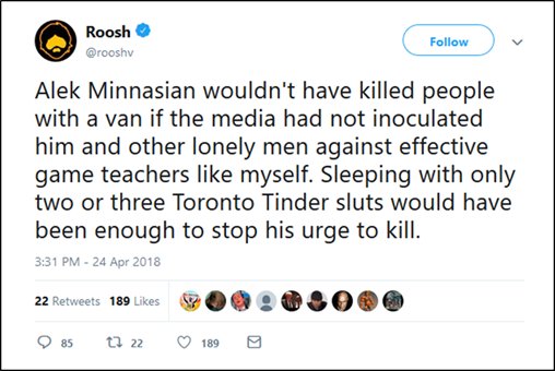 Incels hail Toronto van driver who killed 10 as a new Elliot Rodger, talk of future acid attacks and mass rapes [UPDATED]http://www.wehuntedthemammoth.com/2018/04/24/incels-hail-toronto-van-driver-who-killed-10-as-a-new-elliot-rodger-talk-of-future-acid-attacks-and-mass-rapes/ …
