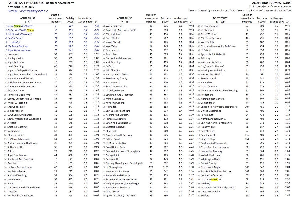 @denis_campbell &@matthew_weaver interesting as@WestSuffolk don't appear as under-reporting for monthly analysis (https://drive.google.com/open?id=1NsSjdSSDxSw-qo9XttuY5kTRXrR-vbUl …). Using same data, for 10 nearest similar-sized trusts, they top the rate of death or severe harm.https://twitter.com/AnalyticsFast/status/1205116472042950656 …
