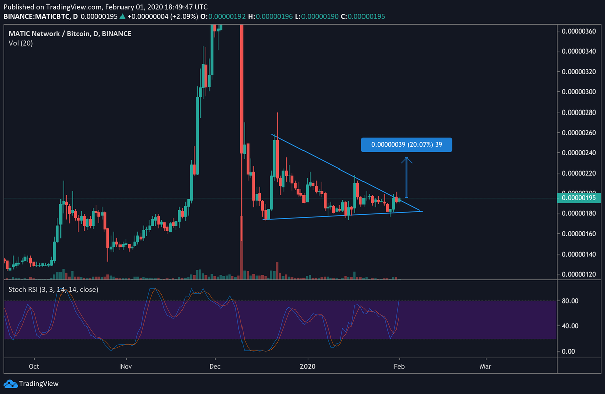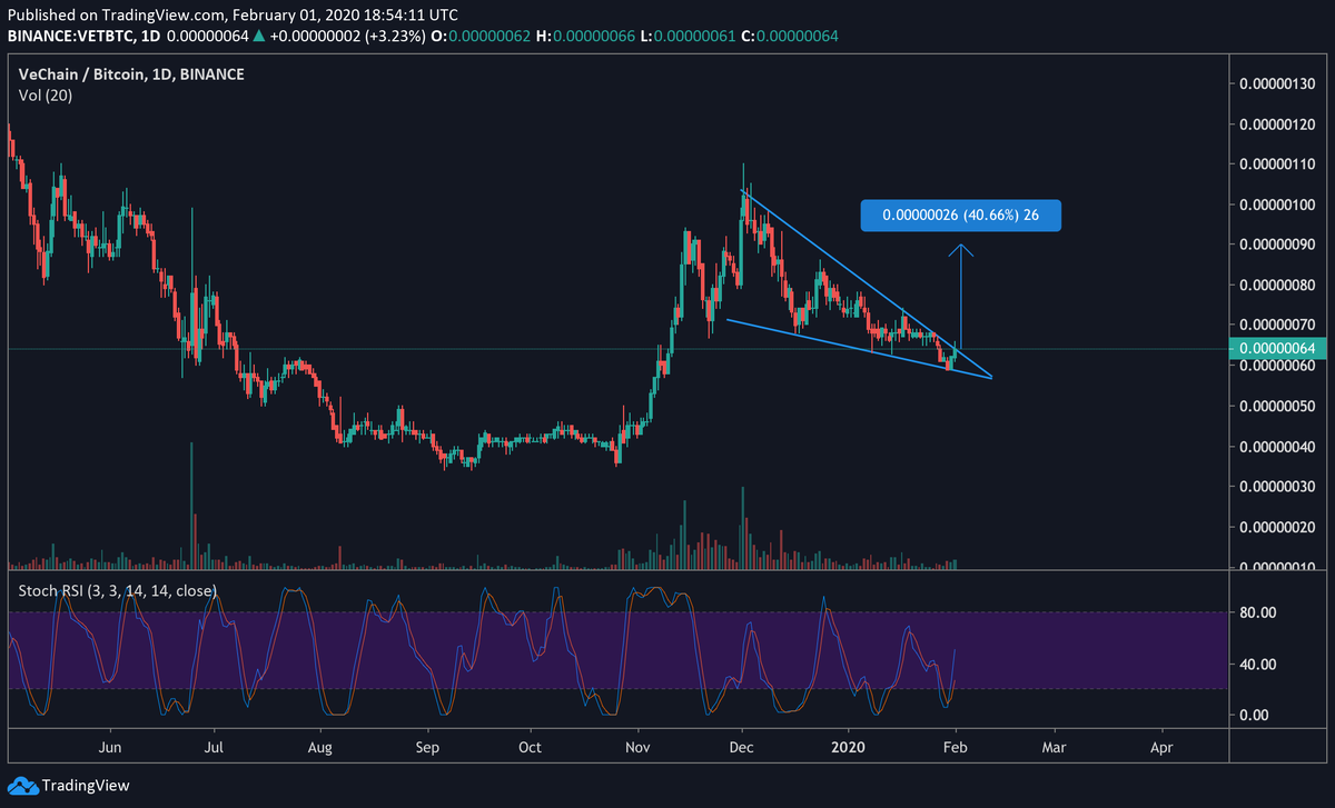 #VET is showing the way. Breaking out of this could lead us to at least 40% profit. Stoch RSI seems ready on daily TF. I am a buyer here.$ALTS$BTCpic.twitter.com/wJyR0qfhrR