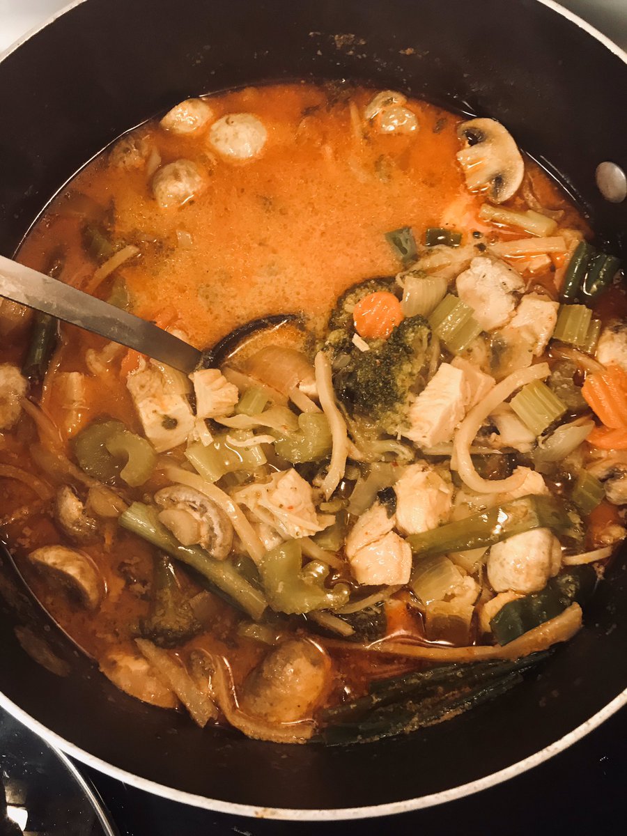 Rainy weekend requires comfort food. Thai veggies & chicken red curry (perfect pair with jasmine rice!) and made-from-scratch chicken & dumpling soup.pic.twitter.com/F0RbiIiIe9