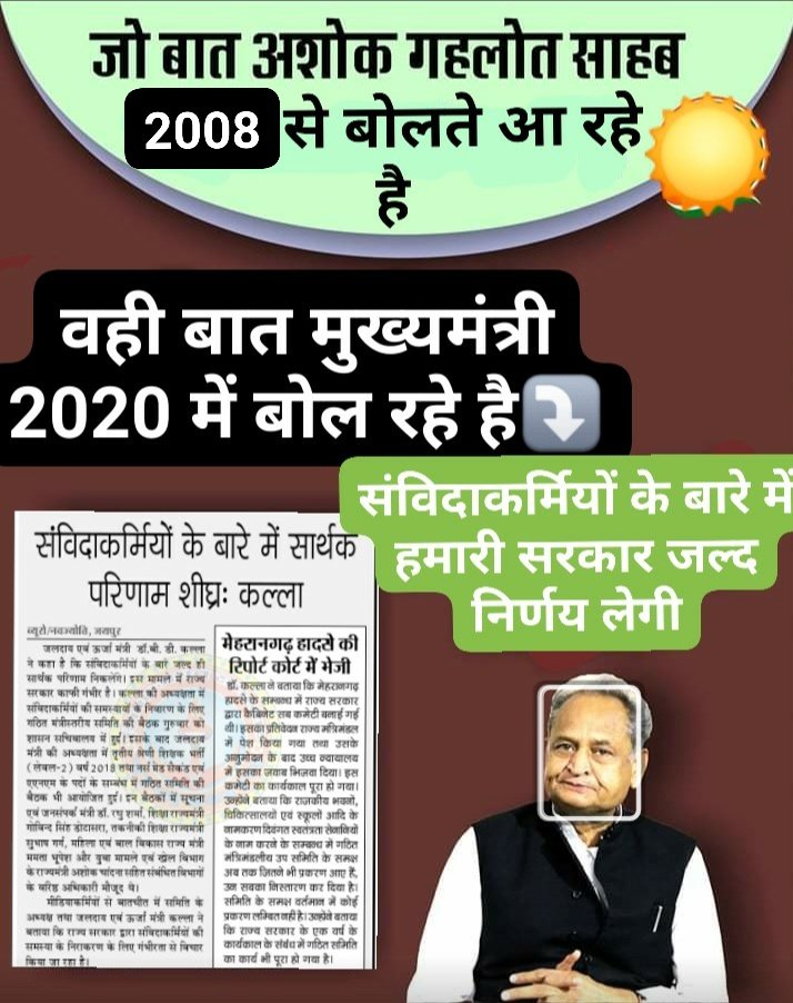 राजस्थान में कांग्रेस के चुनावी वादे झुमले साबित हुए है कहा था विद्यार्थी मित्रो/पंचायत सहायकों को नियमित किया जाएगा दो वर्ष हो गए अभी तक इनको आंकड़े तक नहीं मिले कितने संविदाकर्मी है दो वर्ष में कमेटी कि बैठके सिर्फ चाय नाश्ते तक सीमित रह गई है