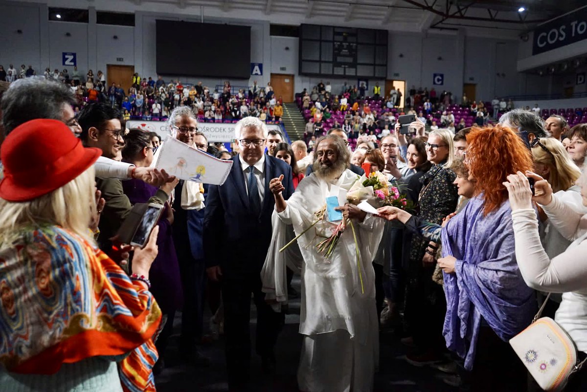 Thousands gathered at COS Torwar Stadium, Warsaw, Poland, for a peace meditation & pledged to