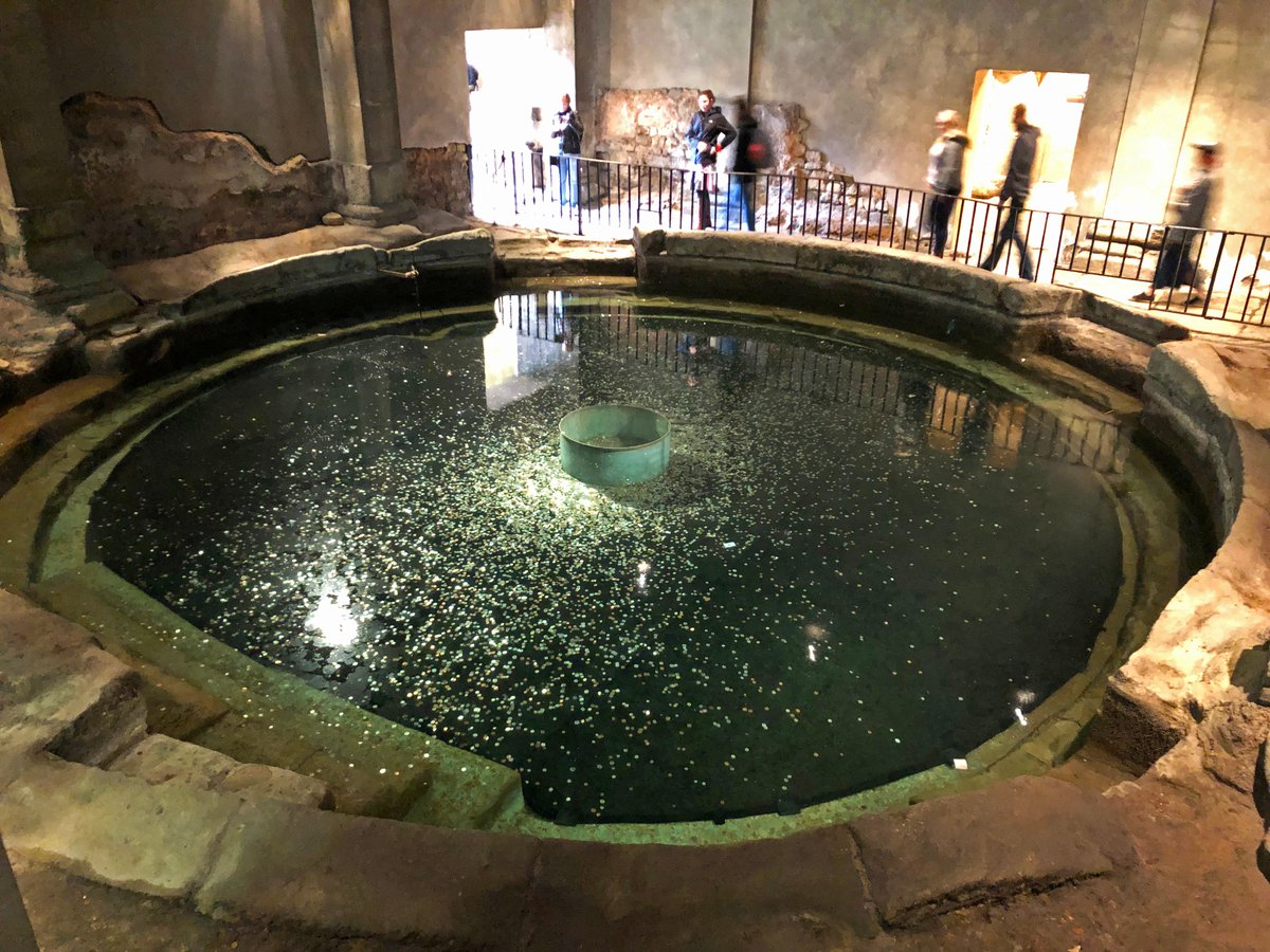 The incredible circular plunge pool at Roman Bath, 29 feet in diameter and over 5 feet deep. Roman bathers could take a cold plunge here after soaking in the hot spring waters of the nearby Great Bath. Aquae Sulis (Bath, Somerset) #roman #archaeology pic.twitter.com/NSZFqYpvMj