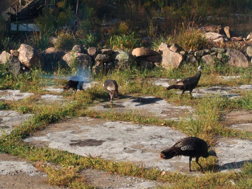 The first morning, I woke up to find a flock wild turkeys, just strutting around being dinosaurs:pic.twitter.com/dwAxPv5uBp