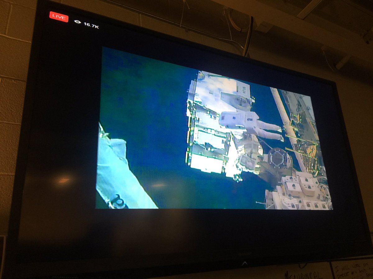 #spacewalk for my students the morning. So inspirering!#WSDiie@NASA#TakeMeToSpacepic.twitter.com/mhbBRJx74O