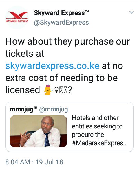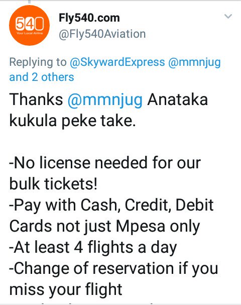 Airlines touting ease of buying bulk tickets for large groups to Mombasa following new govt proclamation that SGR train tickets for groups to be sold only to those with a license.pic.twitter.com/txiv0McOPU