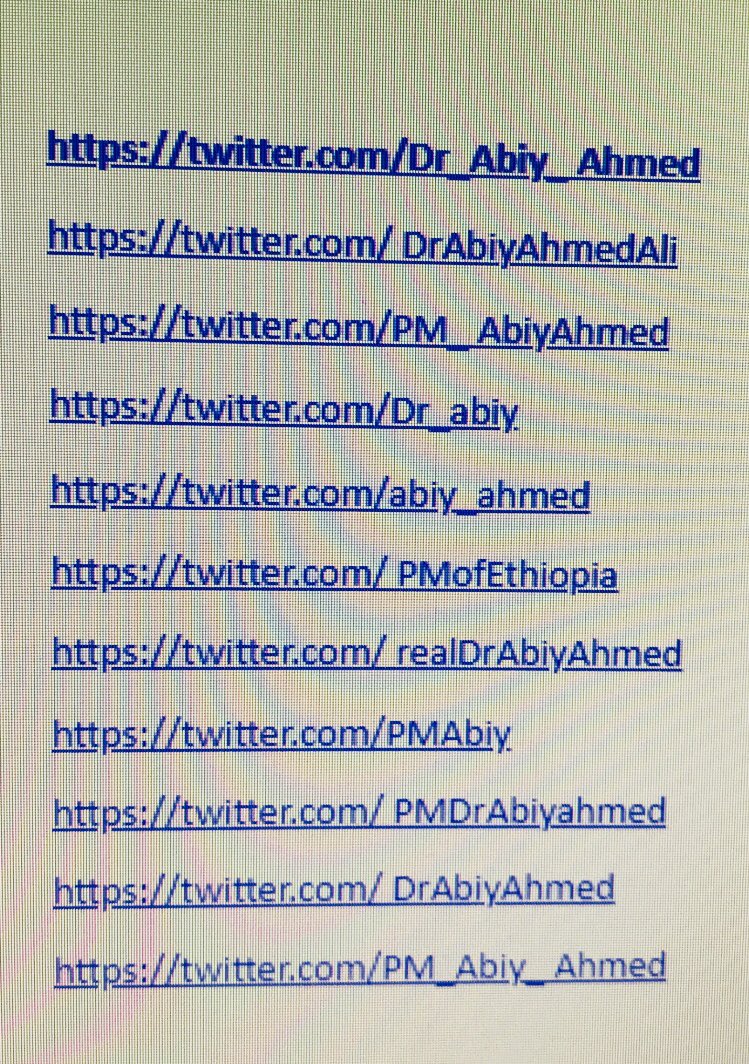 We have noticed that there are several Twitter Accounts under PM Abiy Ahmed's name including the following. Pls note that the PM doesn’t have any twitter account. We will announce a Twitter account under his name once Twitter verification