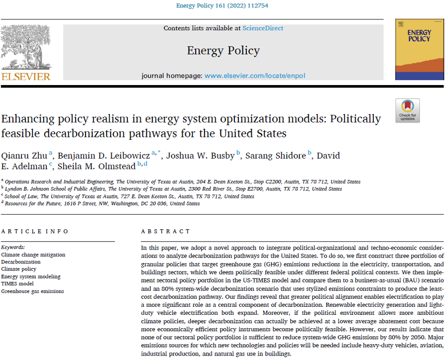 @Qianru_z,@busbyj2,@globalsarang, David Adelman, and@SheilaOlmstead3: "Enhancing policy realism in energy system optimization models: Politically feasible decarbonization pathways for the United States" https://www.sciencedirect.com/science/article/pii/S0301421521006200 …pic.twitter.com/GIF9mBYgU6