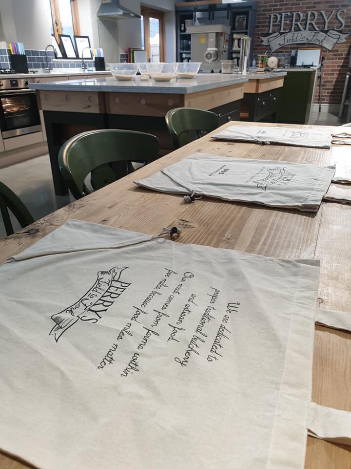 This morning’s course of artisan sausage-making is well under way. Using pork with less than 5 food miles and traditional recipes and linking techniques used for over 90 years