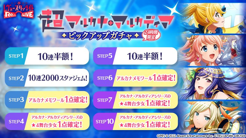 ★4舞台少女の出現率が2.5倍で、STEP4・7・10はアルカナ・アルカディアシリーズの舞台少女が1点確定
