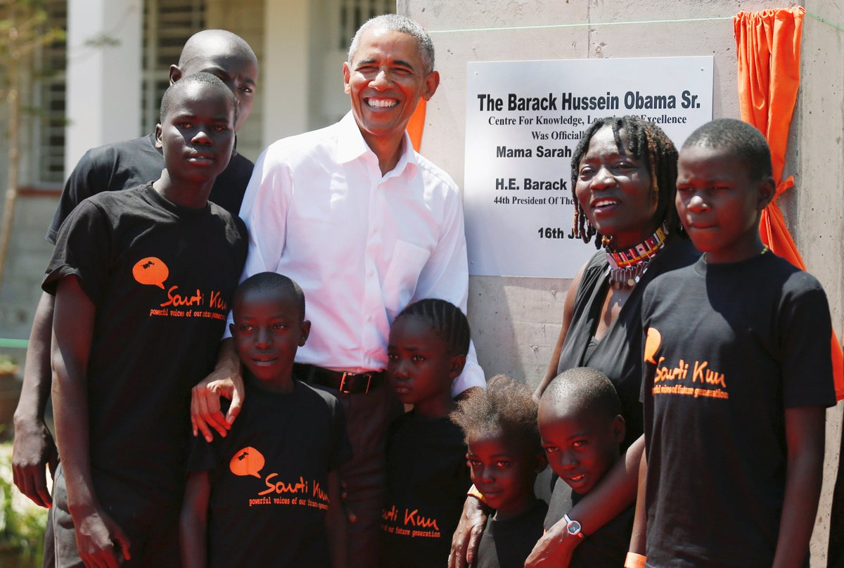 Former President Barack Obama opened his half-sister's new youth education and sports center in his father’s hometown of Kogelo, Kenya.pic.twitter.com/y4loujXONj