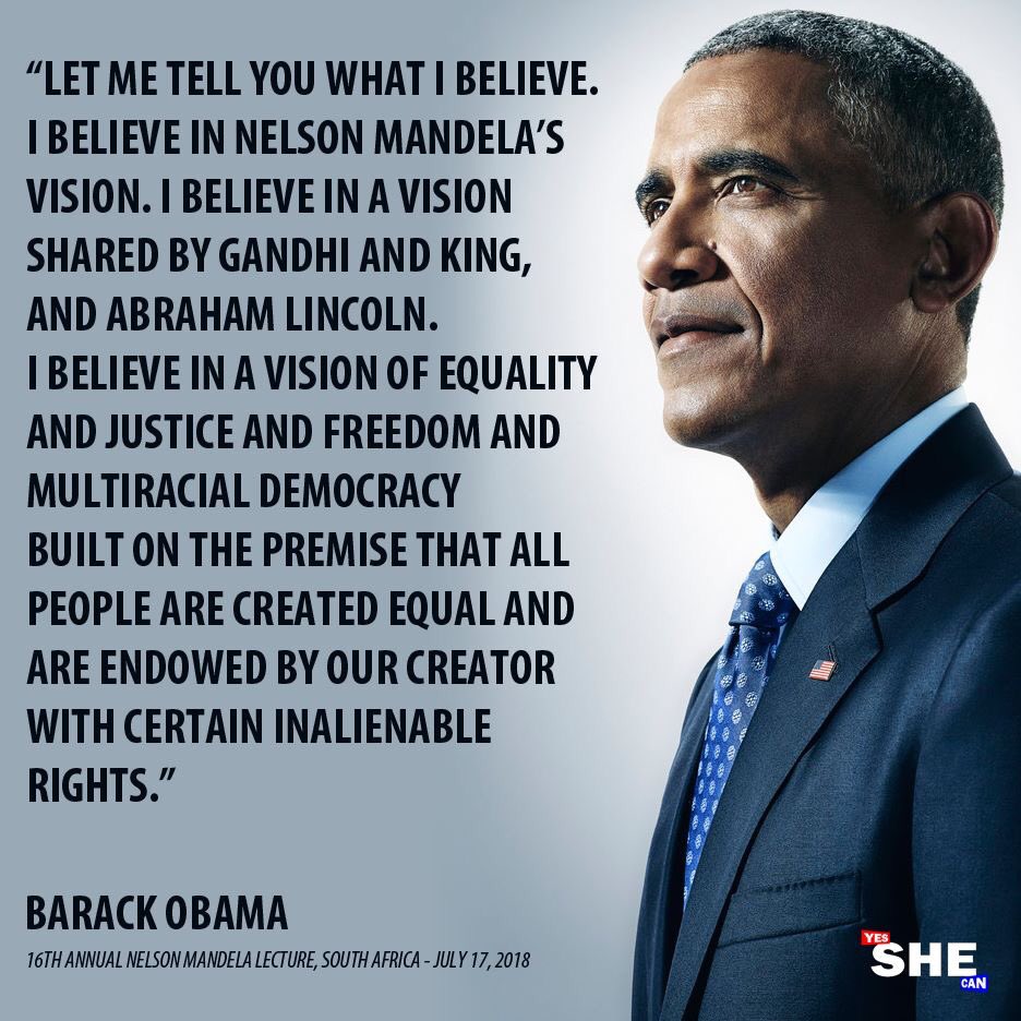 @BarackObama delivering the 2018#MandelaLecture in Johannesburg, South Africa, marking the 100th anniversary of Nelson Mandela's birth.pic.twitter.com/6qrJimHeum