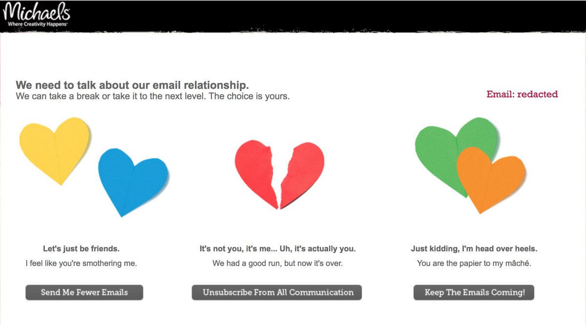 tfw you have go through a whole breakup talk with a craft store's email newsletters