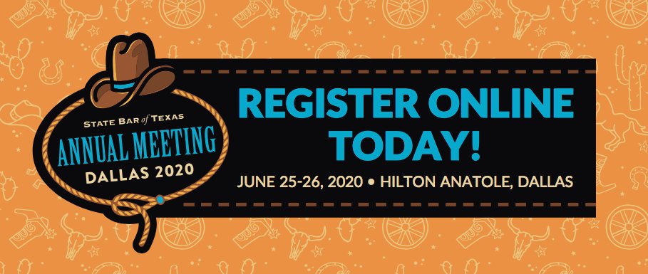 Early bird registration is under way for the 2020 State Bar of Texas Annual Meeting in Dallas! Follow the link to register: http://ow.ly/o91P30qdnIT .