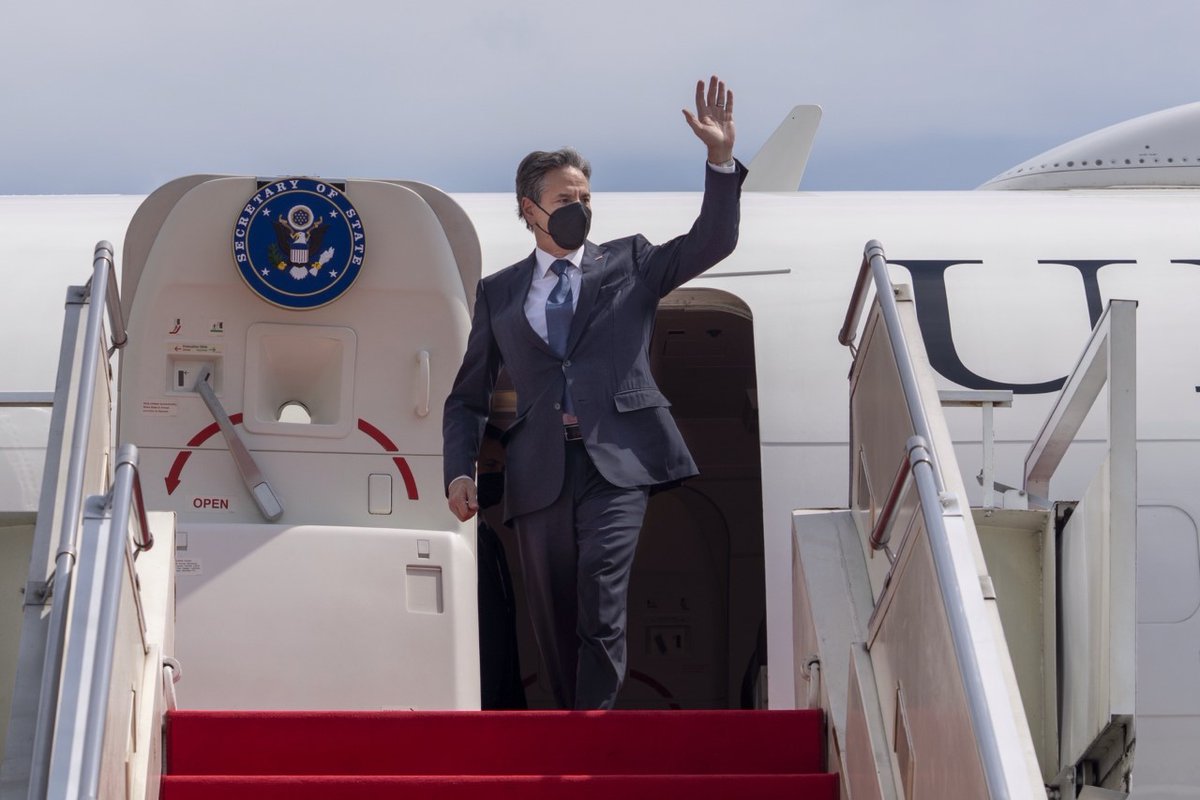 @SecBlinken has landed in Indonesia. In Jakarta, he will discuss shared goals on COVID-19 recovery, strengthening democracy, bolstering trade and economic ties, defending freedom of navigation, and collaborating in cybersecurity with Indonesia.pic.twitter.com/p2n82UQ9mW
