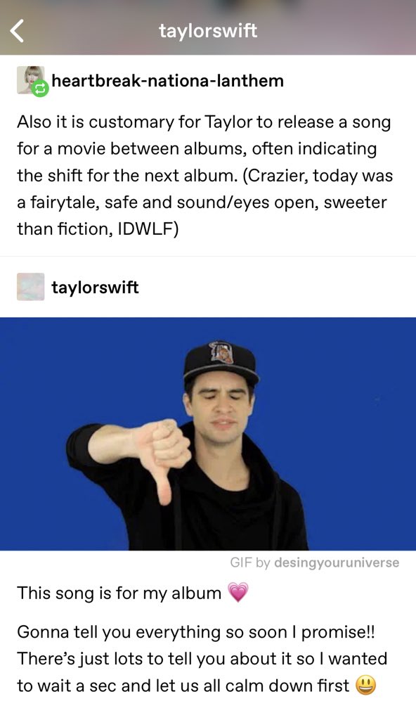 TU | Taylor confirmed via Tumblr that ME! is the lead single from her new album and not for a soundtrack - “This song is for my album! Gonna tell you everything so soon I promise!! There’s just lots to tell you about it so I wanted to wait a sec and let us all calm down first“