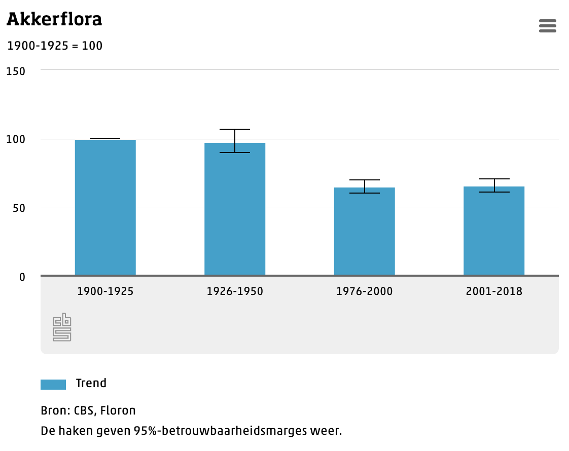 #akkerflora sinds 1900 afgenomen met 35 procent, vooral na 1950 https://www.cbs.nl/nl-nl/achtergrond/2020/06/afname-flora-en-fauna-in-agrarisch-gebied-sinds-1900 …pic.twitter.com/xfiq4Pk7bM